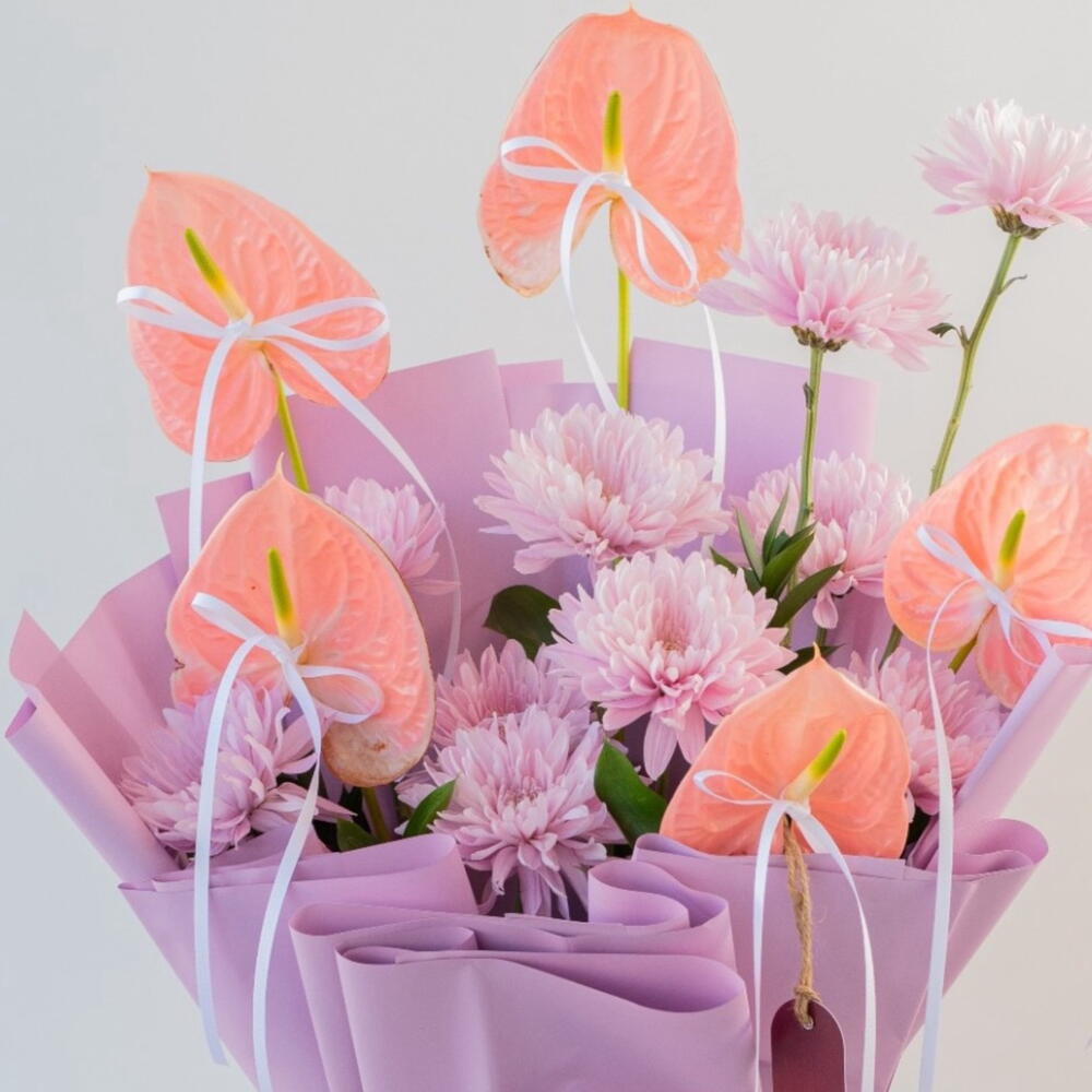 Anthurium - 5 pcs purple chrysanthemum - 10 pcs