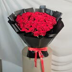 This luxurious bouquet features an abundant arrangement of premium red roses, carefully hand-tied and wrapped in elegant black paper for a bold, timeless look. Each rose symbolizes deep love, passion, and admiration, making this bouquet a powerful expression of heartfelt emotions. Finished with a charming red ribbon, it creates a striking contrast that enhances its romantic appeal. Perfect for celebrating special moments, this arrangement is an ideal birthday gift, anniversary surprise, or romantic gesture to say “I love you” in the most beautiful way. Whether gifted to a partner, spouse, or someone special, this stunning bouquet leaves a lasting impression and turns any occasion into an unforgettable celebration.