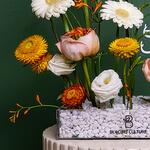Gerbera - 3 pcs heleborus - 2 pcs garden rose - 3 pcs estoma white - 1 pcs acrylic tray - 1 pcs eid stick acrylic - 1 pcs
