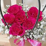 gypsophila white - 8 pcs hot pink roses - 6 pcs