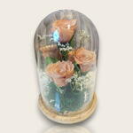 This exquisite piece features real roses that have been carefully preserved to maintain their natural beauty for an extended period. Encased in a delicate glass dome, this arrangement adds a touch of everlasting elegance to any space. A perfect gift for expressing enduring love and appreciation.