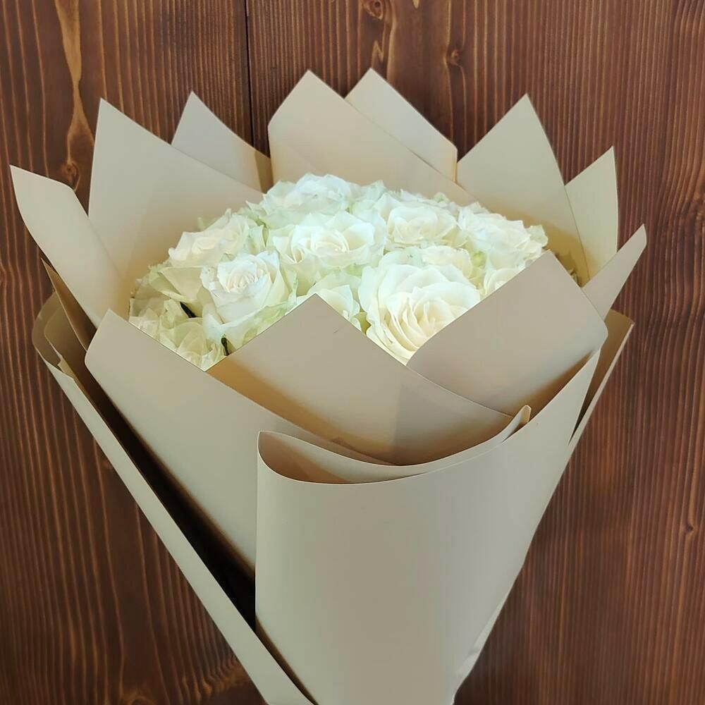 A classic bouquet of pure white roses that embodies elegance, tenderness, and timeless beauty. These blooms symbolize sincerity, admiration, and a fresh beginning, making them the perfect choice for weddings, anniversaries, or meaningful gestures of love. The stylish wrapping enhances the sophistication of the composition, creating an impressive presentation. To keep your bouquet fresh longer, trim the stems diagonally every two days, change the water regularly, and keep the flowers away from direct sunlight or heat sources.