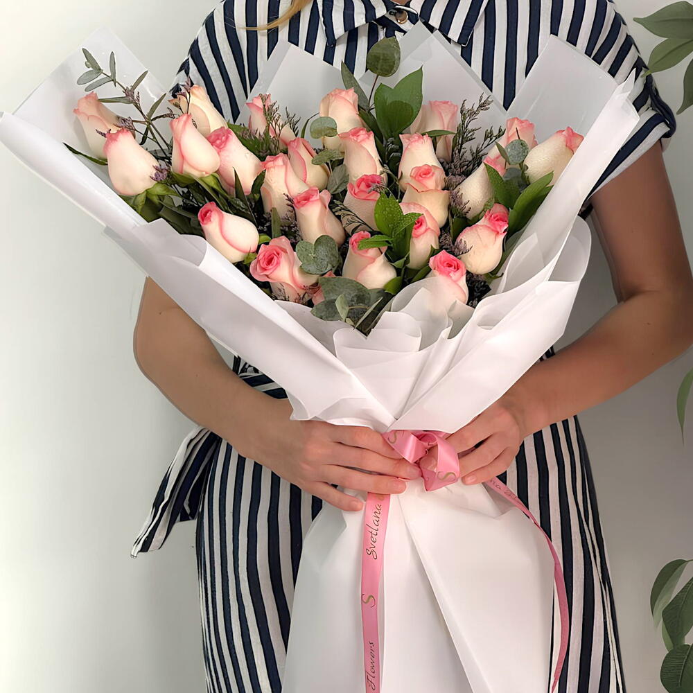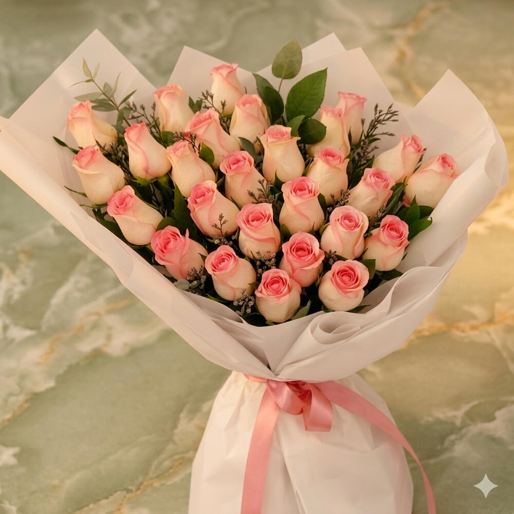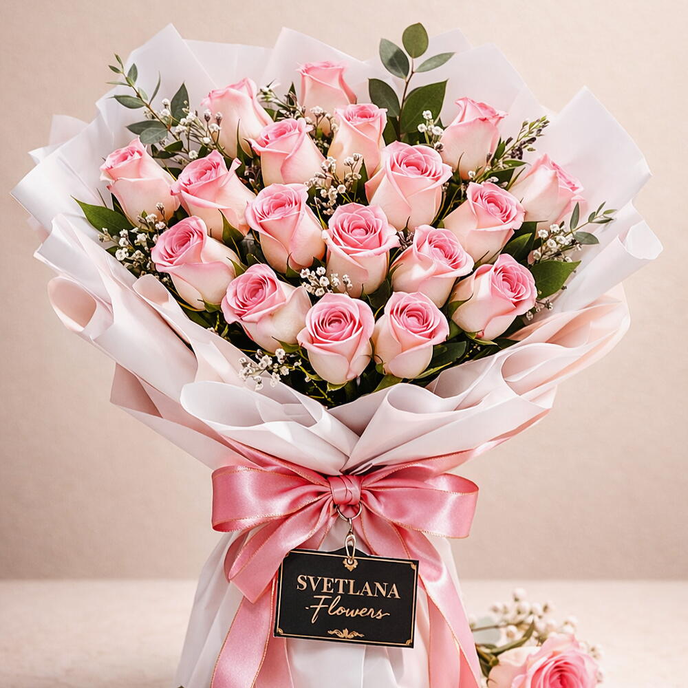 25 Premium Pink Roses | Signature White Wrap | Same Day Dubai 🏆 Recognised as Flowwow Top 18 in Dubai Twenty-five. Not twenty-four. Not twenty-six. Twenty-five — because this number means something. Each of these 25 long-stem premium pink roses has been hand-selected at peak blush bloom and arranged with care inside our signature white wrap, tied with a soft pink ribbon bow. The result is the kind of bouquet that makes a room go quiet when it arrives. Whats included: ✔ 25 premium long-stem pink roses — hand-selected at peak bloom ✔ Signature white luxury wrap ✔ Pink satin ribbon bow ✔ Personalised message card — your words, our artistry ✔ Same-day delivery across Dubai ✔ Fresh guarantee — arrives at perfect bloom, lasts 5–7 days Why 25? Twenty-five is the silver number — the number of a milestone, a quarter century, a love that has grown and deepened. Whether its a 25th birthday, a 25th anniversary, or simply 25 reasons you wanted to say something beautiful — this bouquet carries the weight of the number and the lightness of the flowers simultaneously. Why pink? Pink roses speak the language that red roses sometimes shout too loudly. Admiration. Grace. Deep, abiding affection. In the softest blush tone, they say I see you, I appreciate you, and I thought of you today with a quiet power that lasts long after the last petal falls. Recognised as Flowwow Top 18 in Dubai — because 1,310 people saw this bouquet and the ones who clicked never forgot it. Perfect for: 🌸 25th Birthday — the milestone she deserves to remember ❤️ Silver Anniversary — 25 years, 25 roses 💕 Mothers Day — soft, romantic, perfect 🎓 Graduation — for the achievement that deserves flowers ✨ Just Because — always the most powerful reason same-day delivery across Dubai.