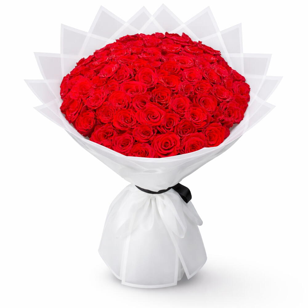 Make a grand statement with this stunning bouquet of 80 premium red roses, elegantly wrapped in sleek White paper and tied with a bold white ribbon. A perfect gift for romantic occasions, anniversaries, or special celebrations