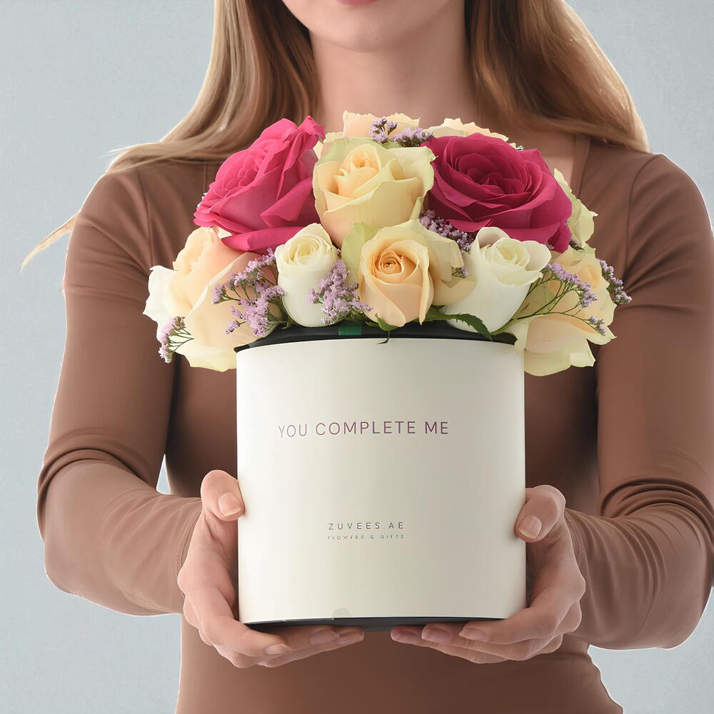 Celebrate love with timeless elegance through the Elegant Mix Arrangement – You Complete Me Bloom Box, a romantic floral creation that beautifully expresses heartfelt emotions and devotion.