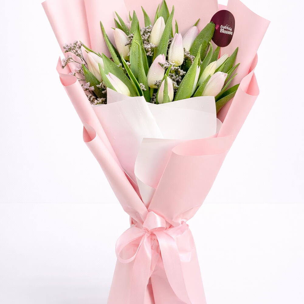 Celebrate love, grace, and new beginnings with our Elegant Pink Tulip Bouquet, beautifully handcrafted by Arabian Blossom.