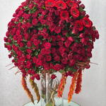 astilbe - 10 pcs amaranthus - 5 pcs gerbara - 7 pcs red babyrose - 50 pcs messsanga - 2 pcs