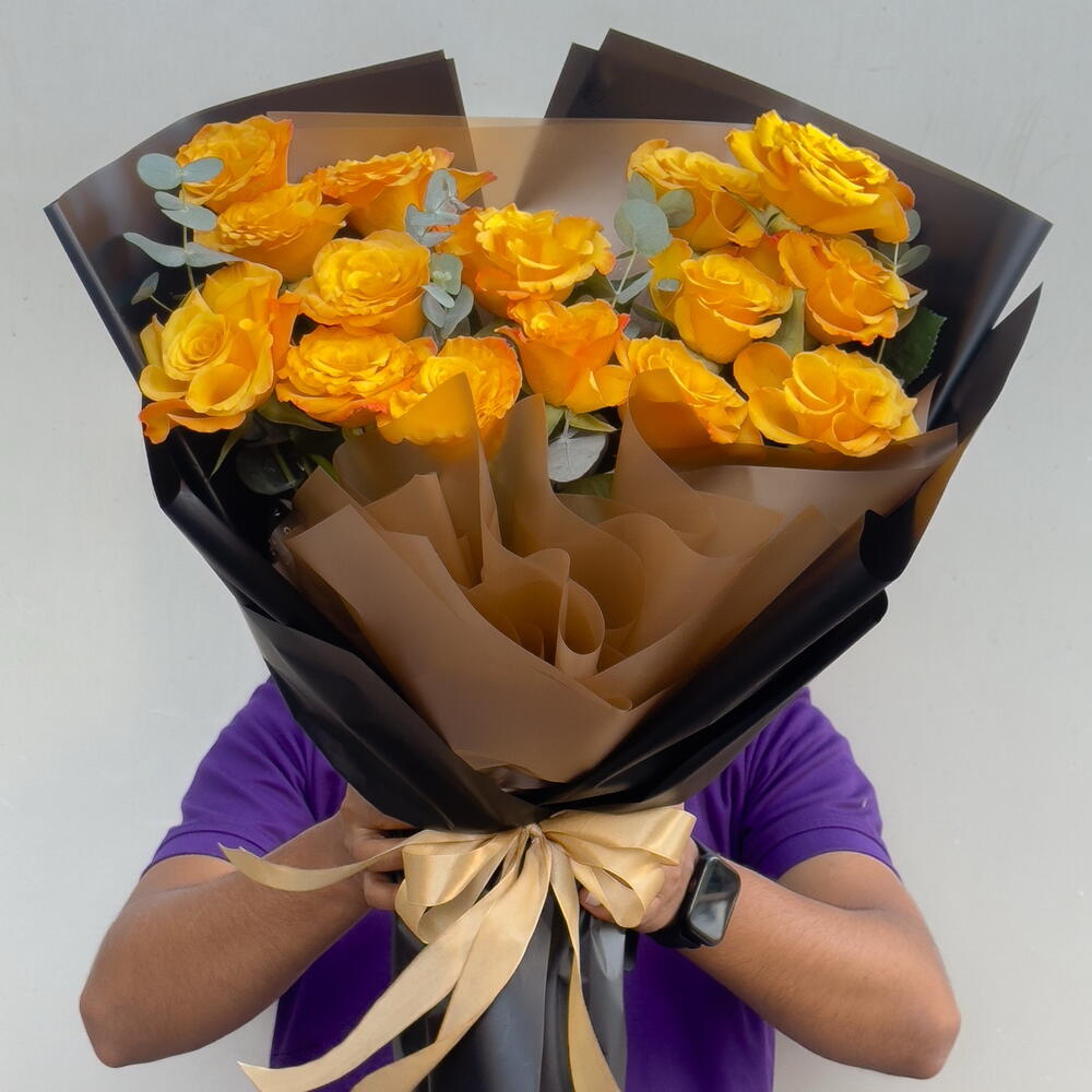 Sunset Spark Bouquet — 15 Orange Roses | Vibrant Gift of Passion, Energy Joyful Success