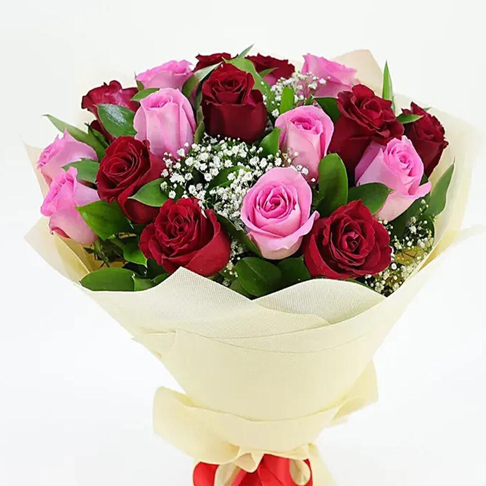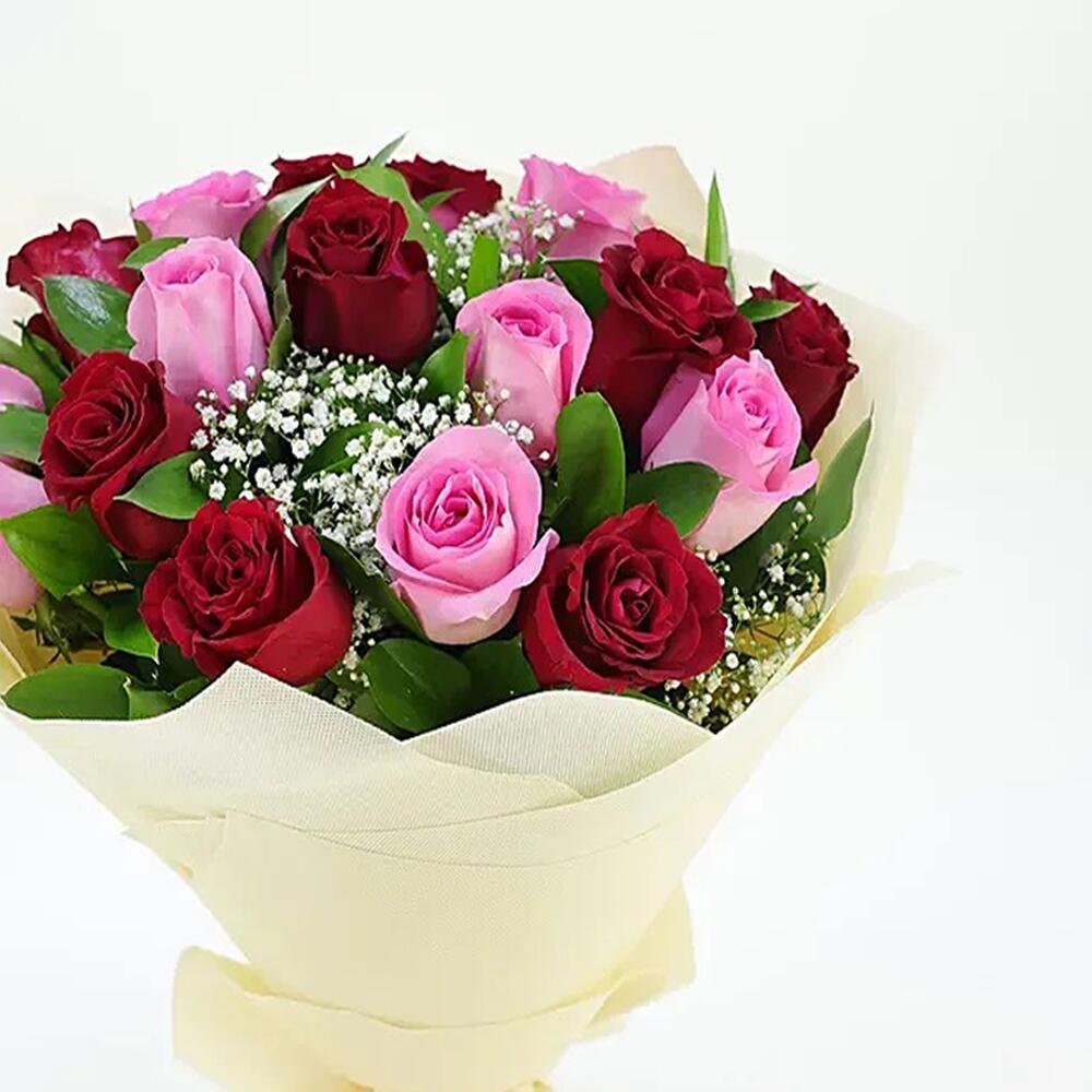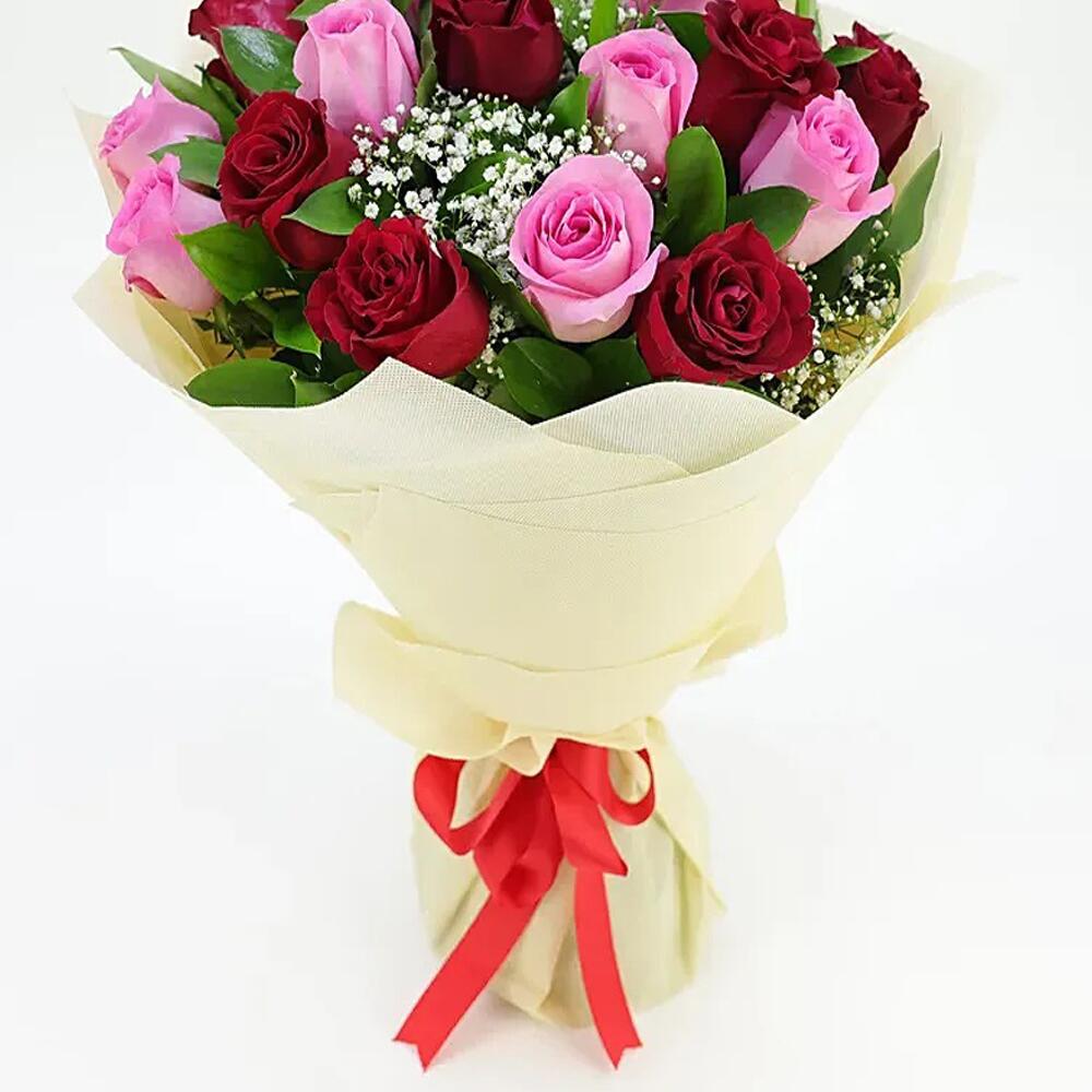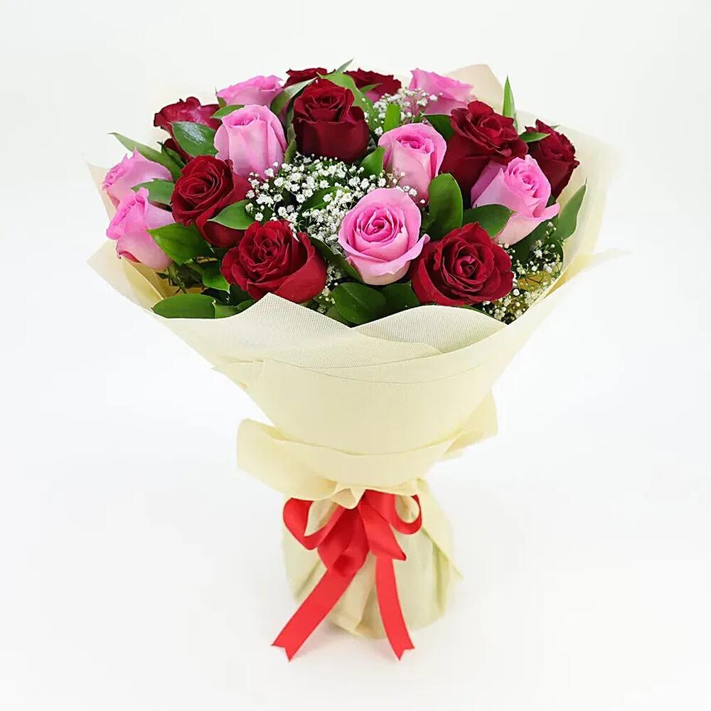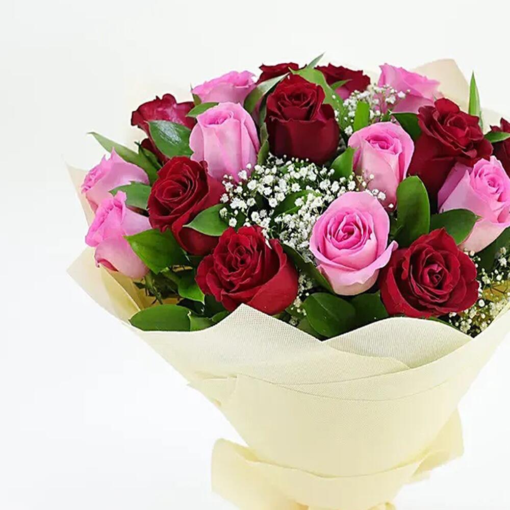 This enchantingly beautiful mono bouquet features a passionate combination of 11 vibrant red roses, interspersed with 10 tender pink roses. Carefully selected and immaculately arranged, the roses are enveloped in two layers of high-quality wrapping paper, adding an elegant finish. The bouquet is tastefully adorned with a single ribbon, securing the gorgeous blooms and providing the perfect touch of sophistication. Celebrate your cherished moments with this exquisite blend of love and beauty.