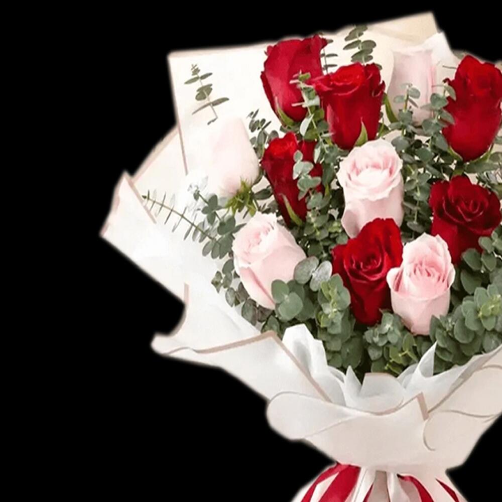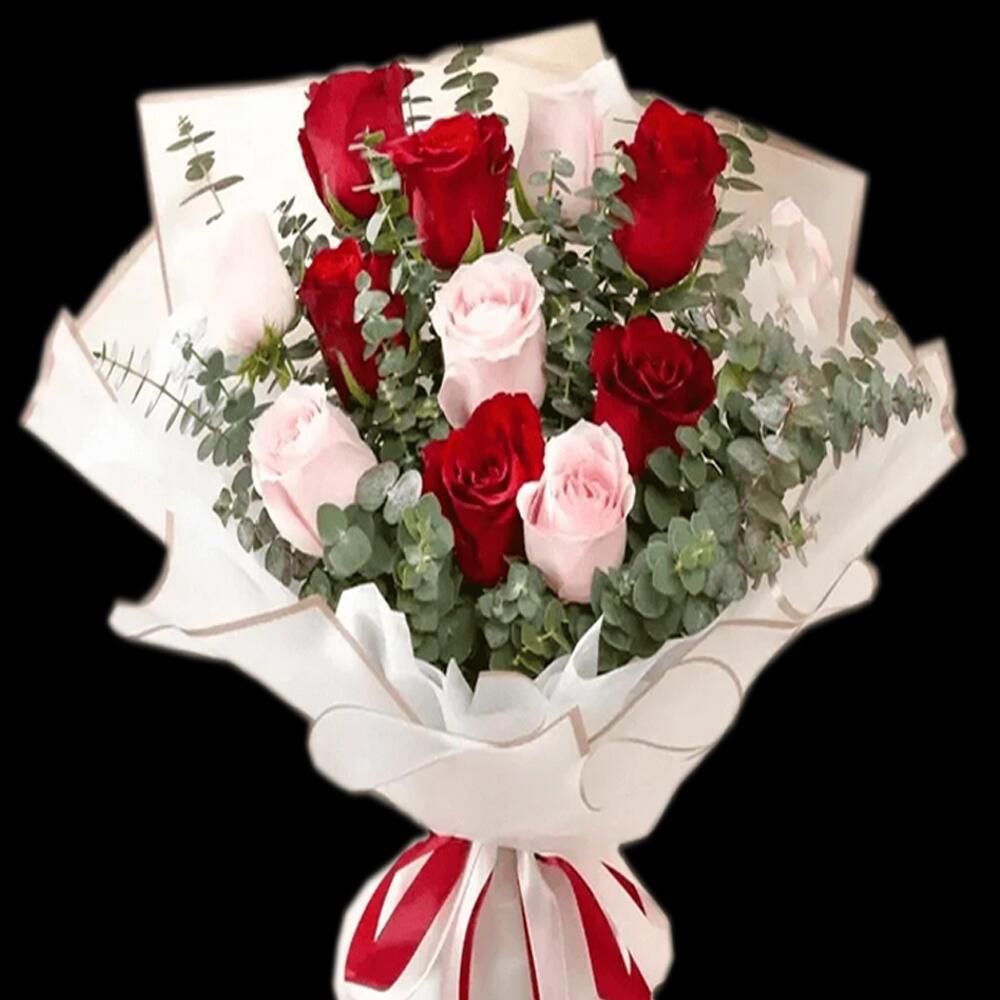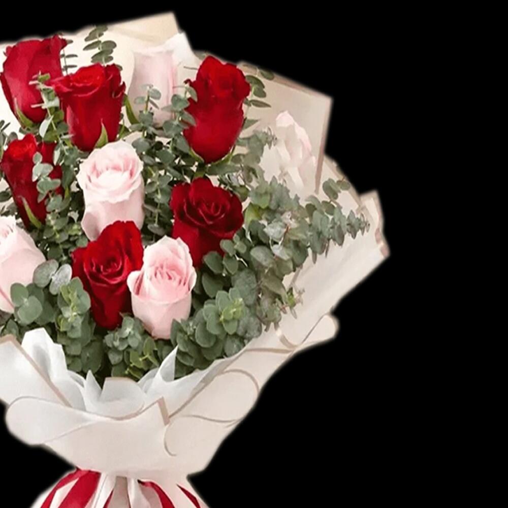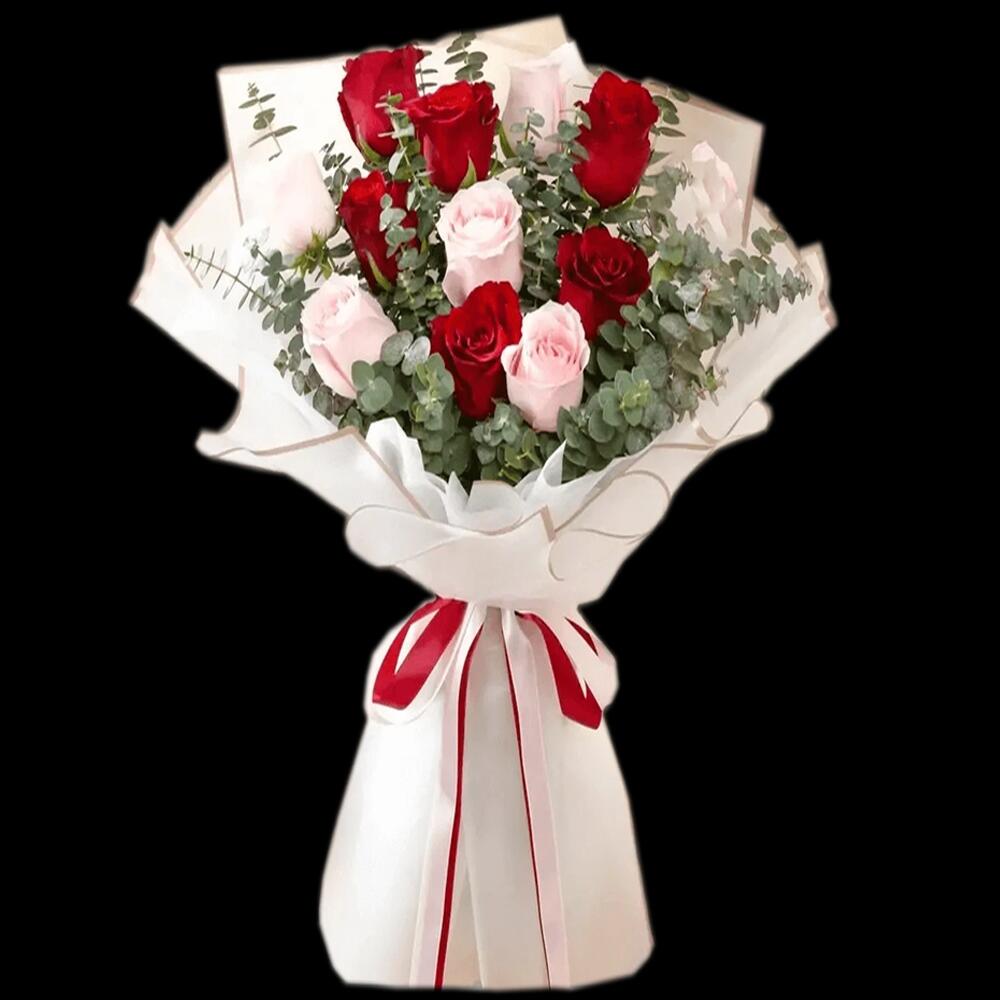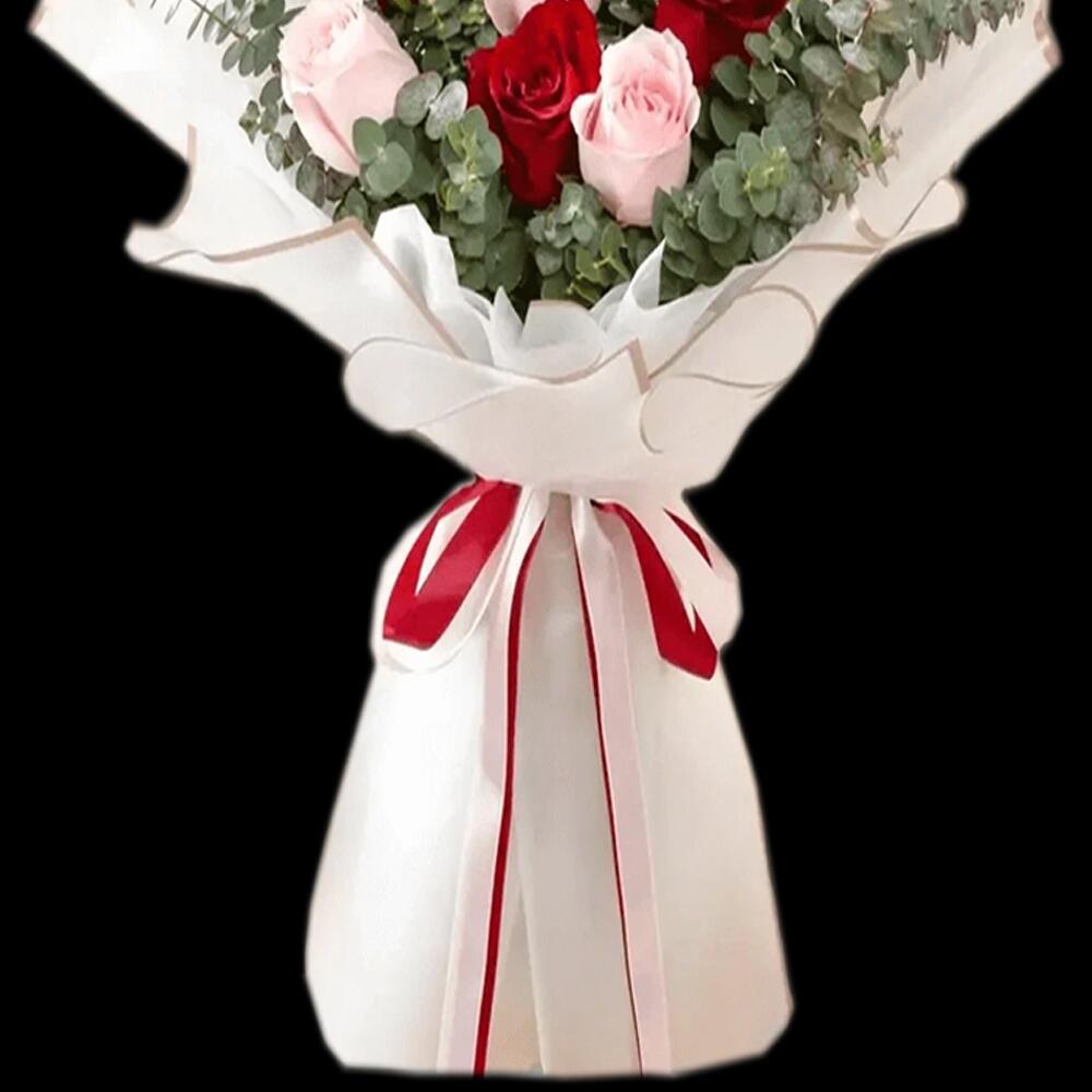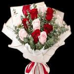 Red rose - 8 pcs Pink rose - 7 pcs wrapping paper - 4 pcs