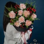 hypericum red - 8 pcs carnation light pink - 8 pcs thalaspi - 4 pcs