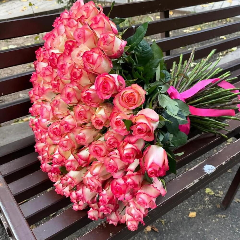 double color rose - 101 pcs rybon - 3 pcs