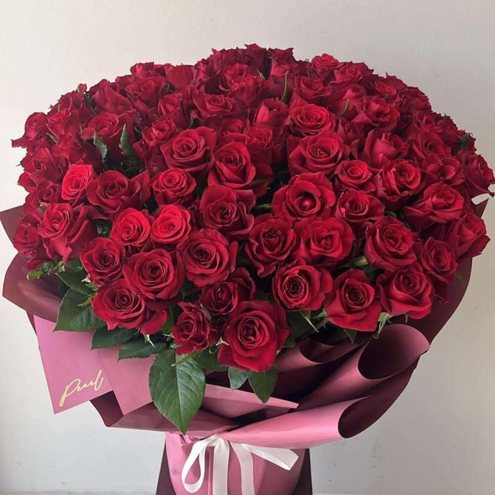 Immerse in the sheer allure of this deluxe Mono Bouquet, featuring a grand ensemble of 100 meticulously handpicked roses. Each stem tells a tale of exquisite beauty and refinement, offering a sensational visual feast in one monochromatic marvel. This Mono Bouquet guarantees to captivate, making it a heartfelt gift or a mesmerizing centerpiece that spells elegance and timeless charm.