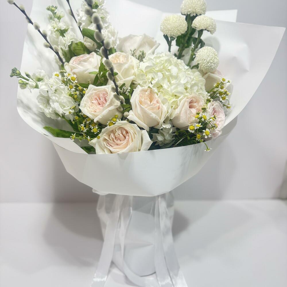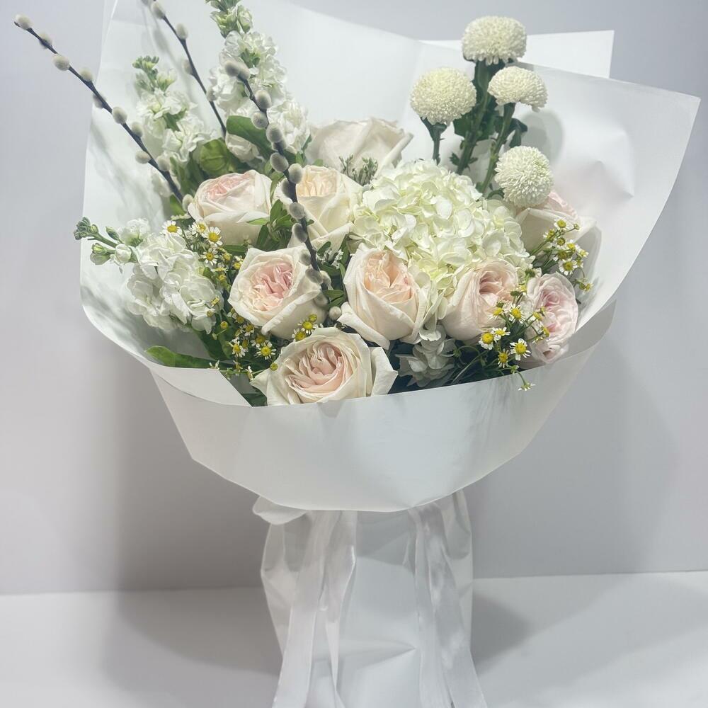 Hydrangea - 1 pcs ping pong - 4 pcs ohara rose - 9 pcs matholia - 3 pcs