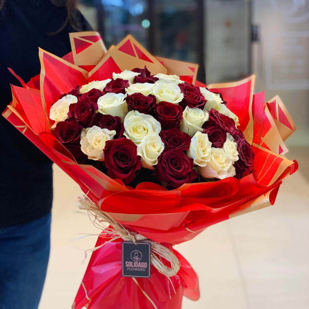 in a bqt - 1 pcs ever red roses - 26 pcs proud roses - 25 pcs