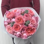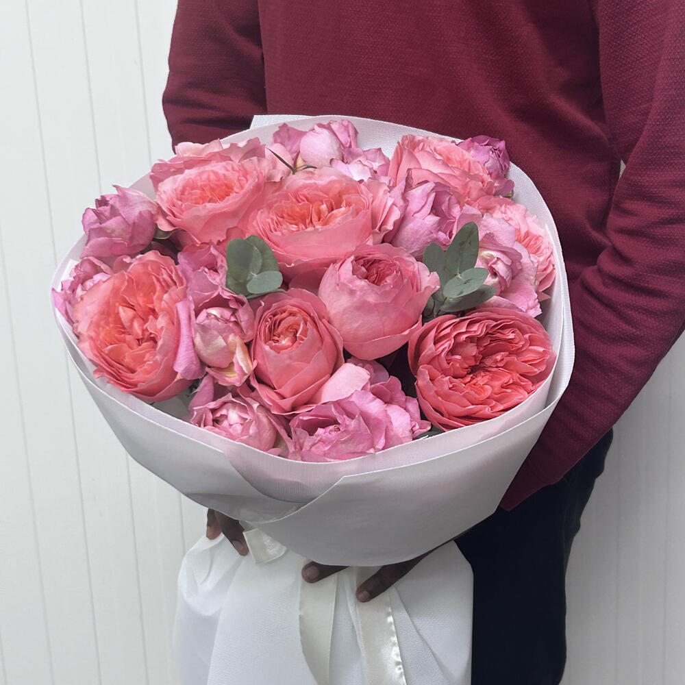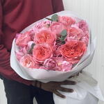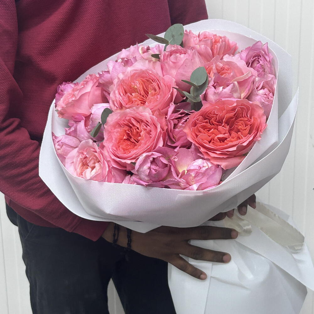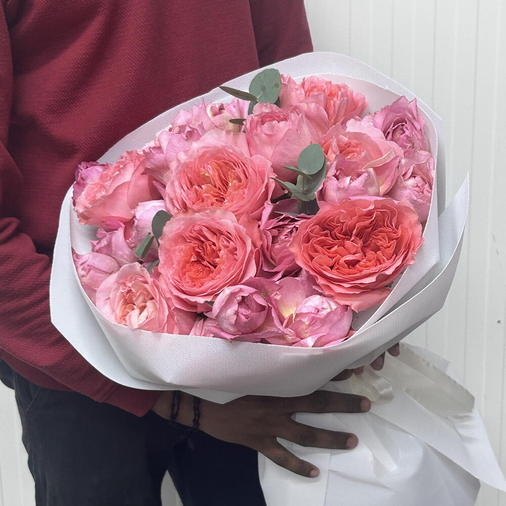 wrapping paper - 3 pcs pink expression - 5 pcs eulcyptus - 3 pcs julietta pink spray roses - 4 pcs