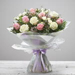 10 White Roses and 10 Pink Roses with Seasonal Greenery