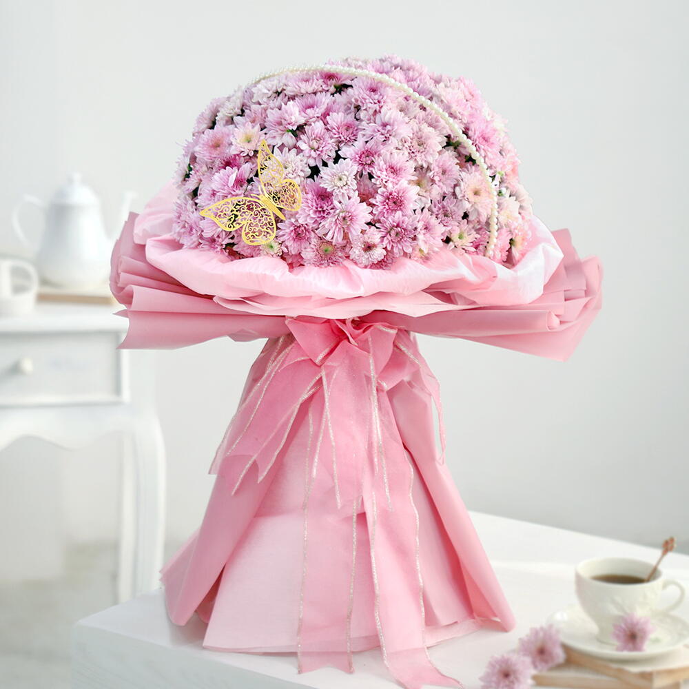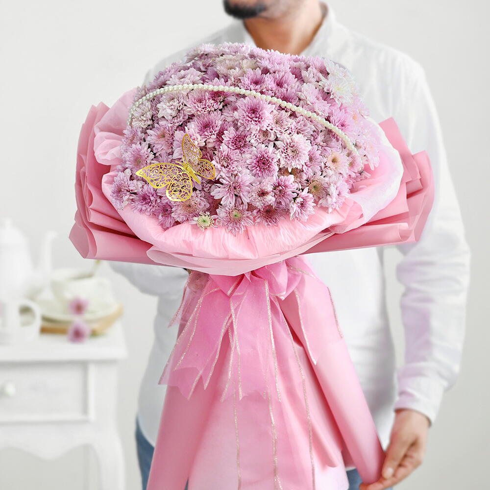 Their compassion moves you each day, making you want to go the distance for them. Send your love with this blooming assortment thats a true sight to behold - Mauve spray chrysanthemum and gold butterfly tag.