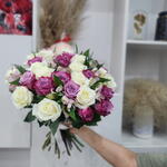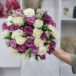 White rose - 15 pcs purple rose - 15 pcs alostroemeria - 5 pcs