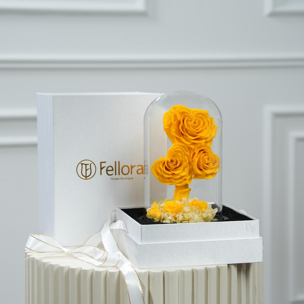 Elegantly preserved Yellow roses in a luxury glass dome, beautifully packaged for a timeless romantic surprise. Perfect for Valentine’s Day, anniversaries, and heartfelt moments that deserve forever beauty.