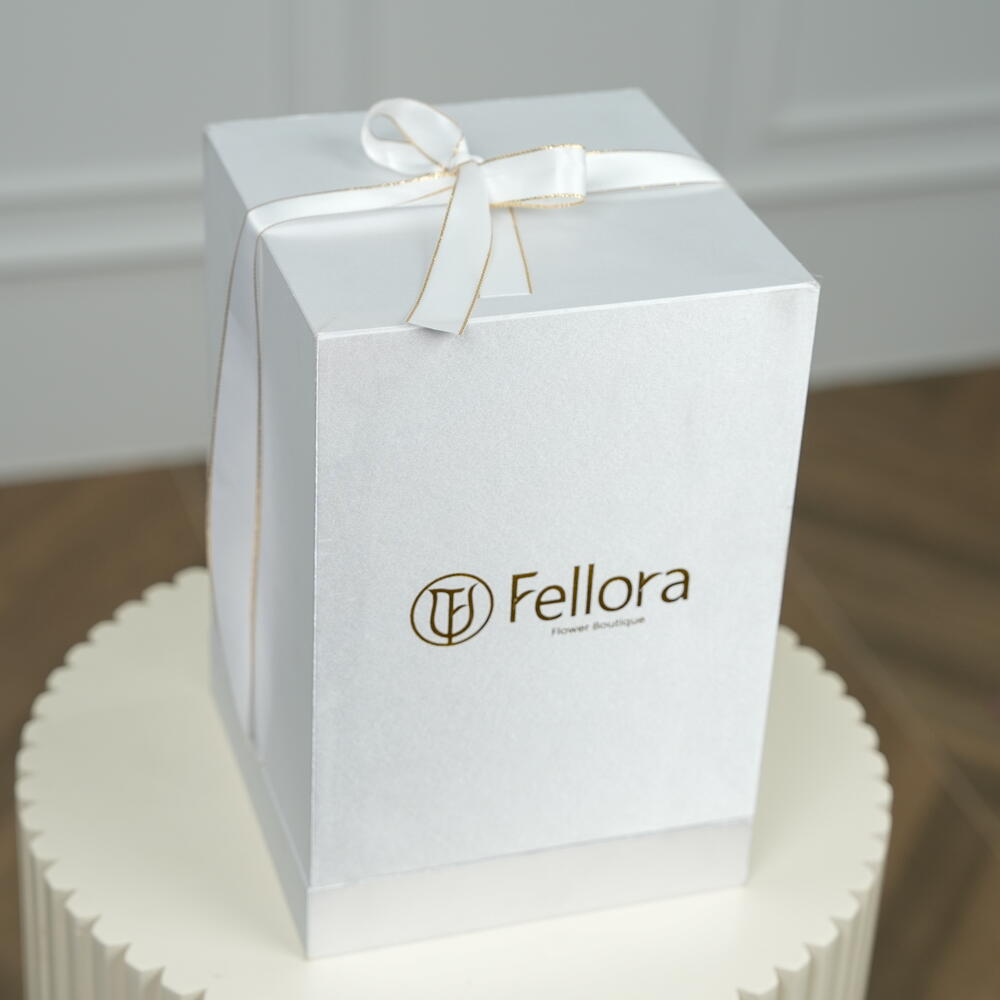 paper bag - 1 pcs dome vase - 1 pcs premium fellora white box - 1 pcs yellow infinity rose stem (big) - 3 pcs yellow infinity rose stem (small) - 2 pcs