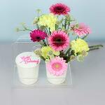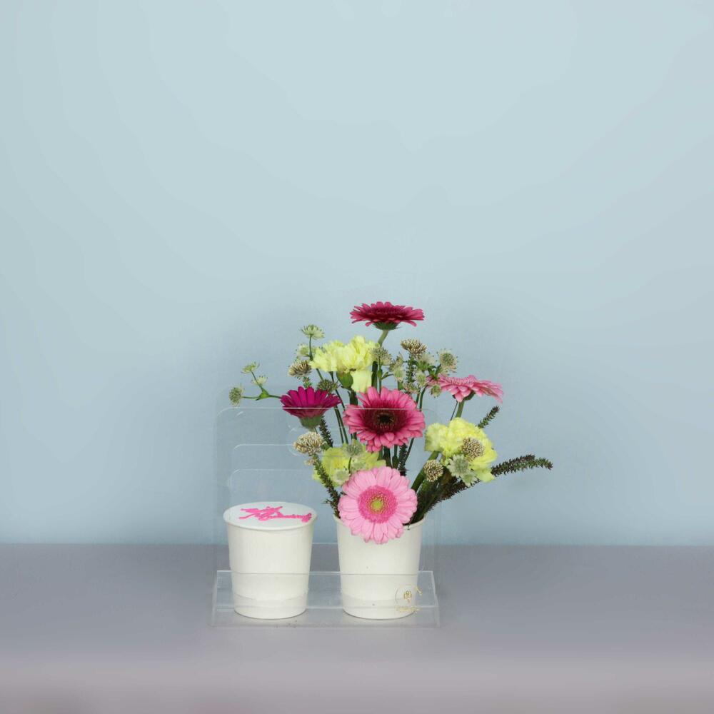 Gerbera - 4 pcs carnation - 3 pcs creamy cup - 300 g acrylic bag - 1 pcs