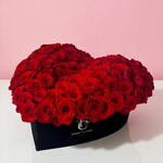 Celebrate love in its most enchanting form with this stunning heart-shaped arrangement of lush red roses. Each bloom is handpicked for its rich color, velvety petals, and captivating fragrance, creating a truly romantic masterpiece. Nestled in an elegant black Casa Flora box, this design exudes sophistication and timeless charm. Perfect for anniversaries, Valentine’s Day, or any special occasion, it is a gift that speaks the language of deep affection. The heart shape symbolizes passion and devotion, making it an unforgettable gesture for someone truly special. Surprise your loved one with this luxurious floral treasure and let the roses say what words cannot. Forever Yours X Large – 100-120 premium roses in a stunning 3D design, elegantly arranged in a luxurious XL velvet heart box (47 cm x 44 cm), the ultimate symbol of eternal love and passion.