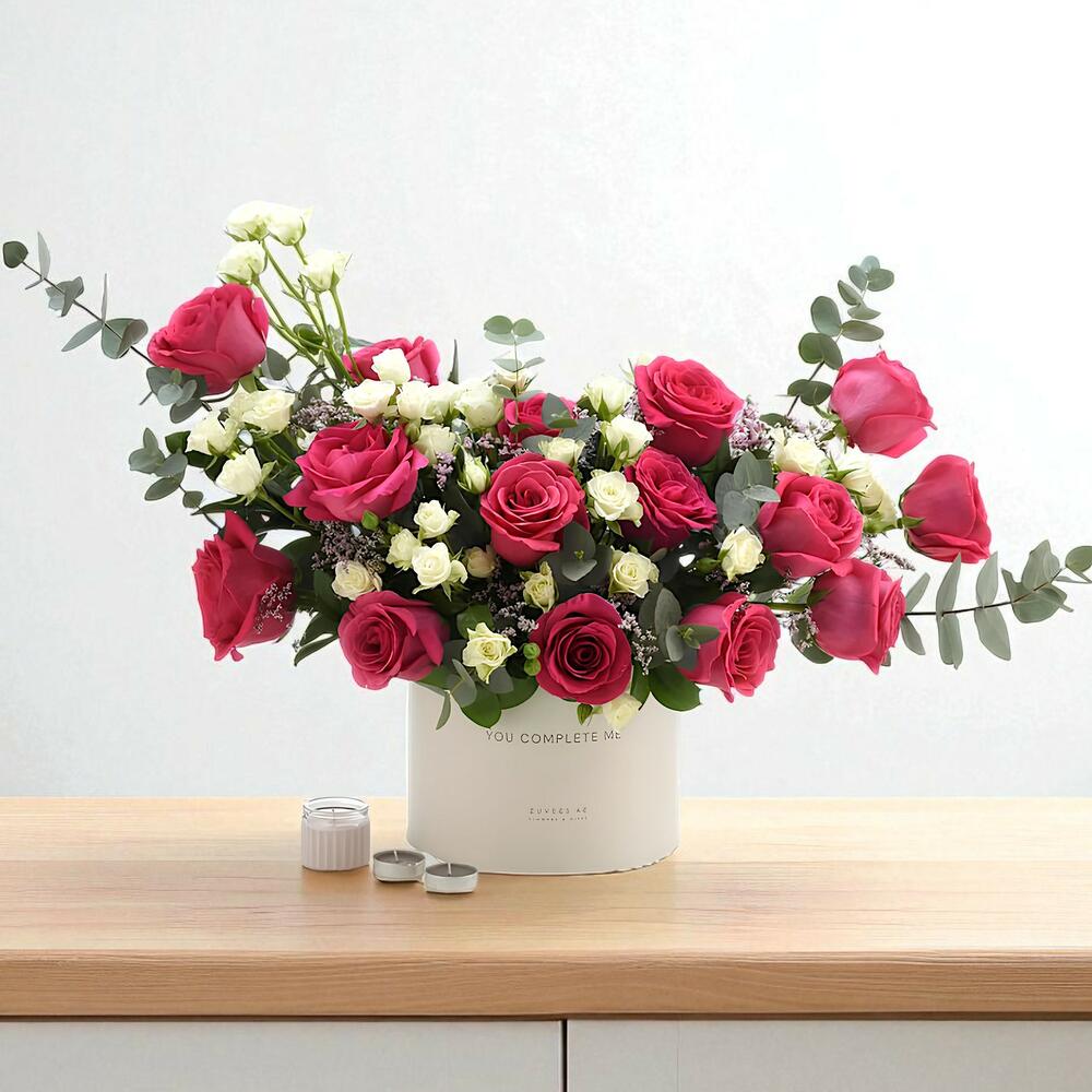 Presented in an elegant white box, this sophisticated design is perfect for celebrating love and admiration with a touch of timeless elegance. ✨ Please note: The box of this arrangement can be customized in different colors upon request. Available options include: White, Desert Sand, Sand Theme, Red Theme, Black Theme, and Black.