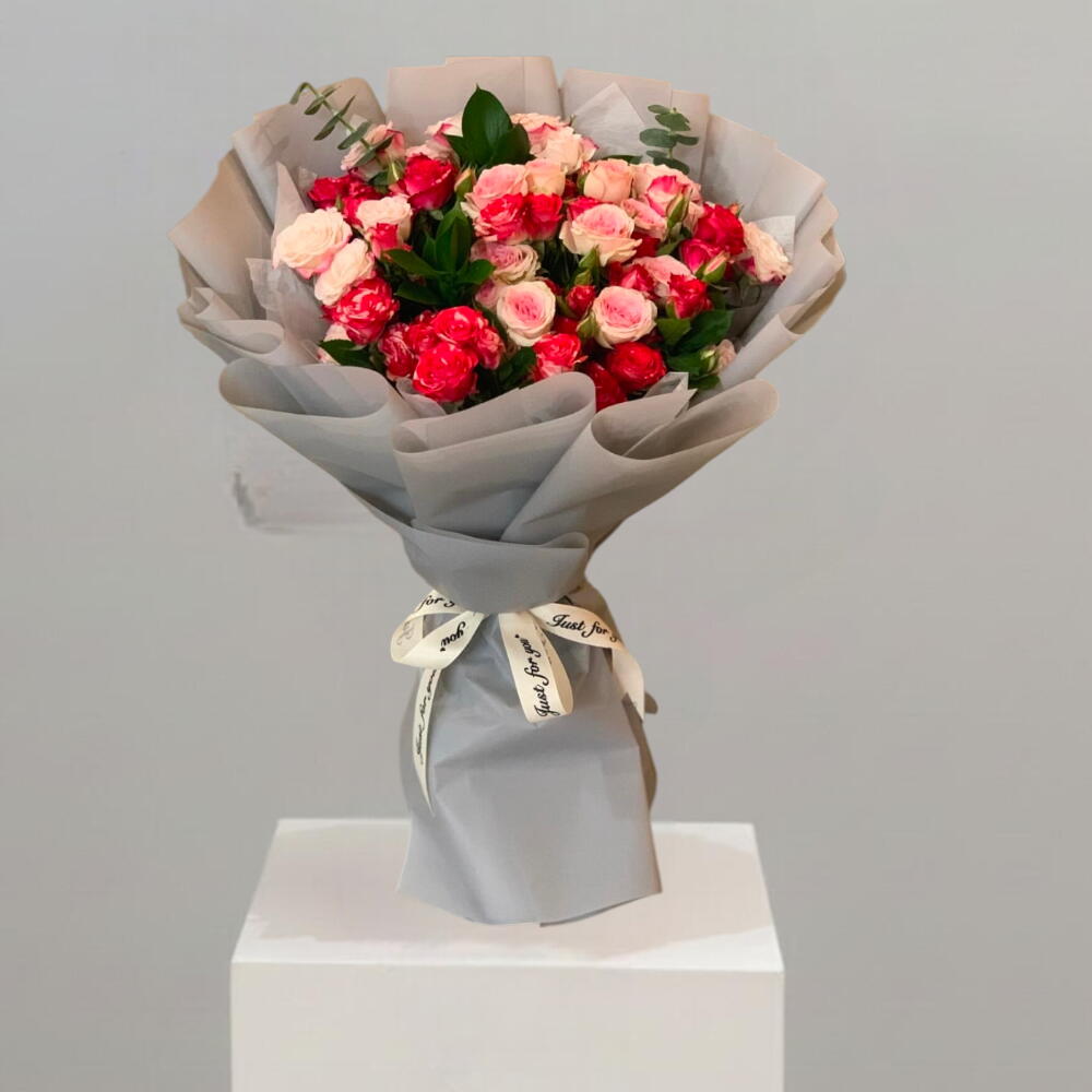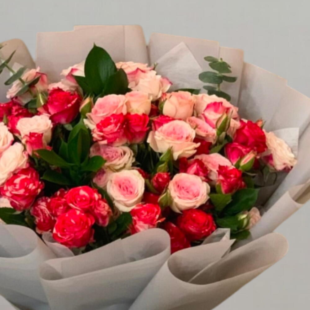 eucalyptus leaves - 4 pcs red spray roses - 39 pcs pink spray roses - 50 pcs