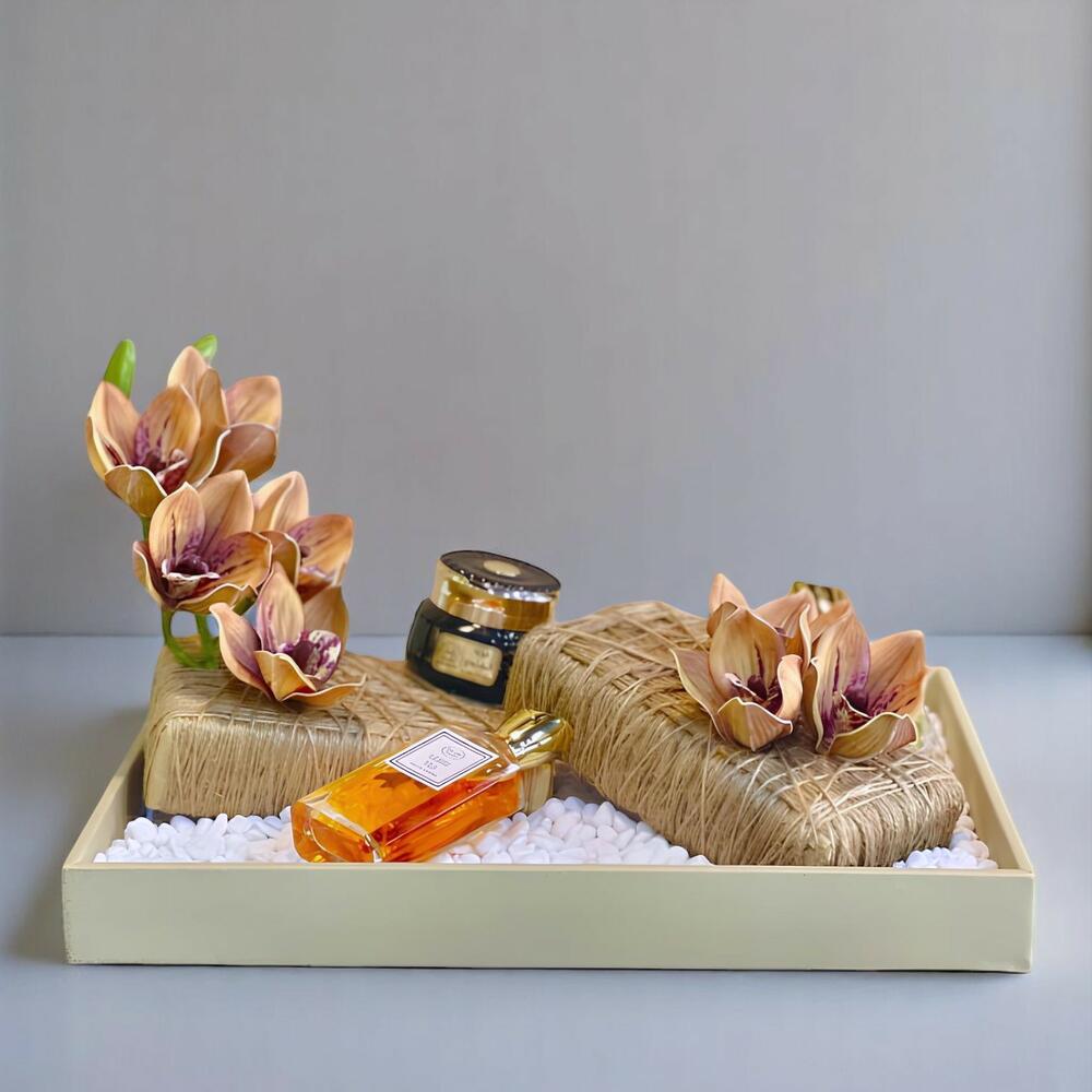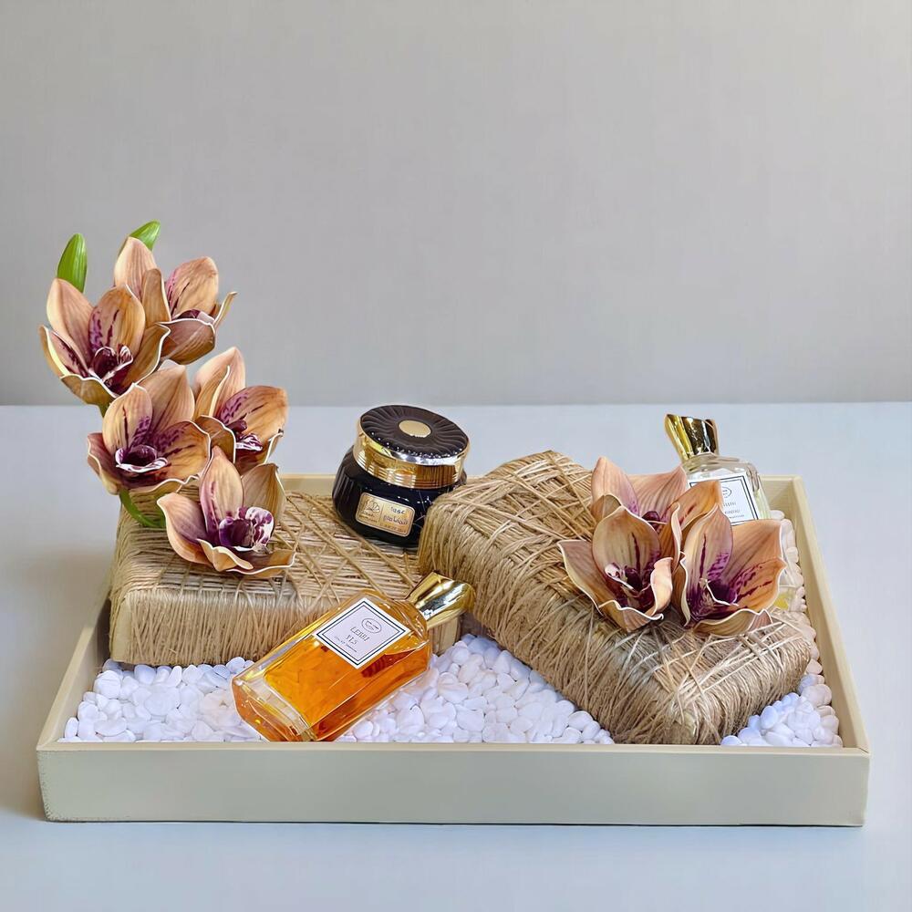 artificial flower - 2 pcs french perfumes - 2 pcs oud wood - 1 pcs