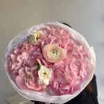 freesia white - 2 pcs ranunculus - 1 pcs hydrangea force pink - 3 pcs