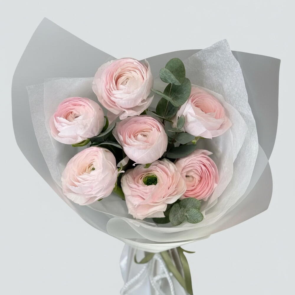Flowers bouquet with pink ranunculus 7 pc