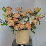 Eucalyptus - 3 pcs cappuccino rose - 15 pcs white limonium - 5 pcs white lily - 2 pcs