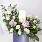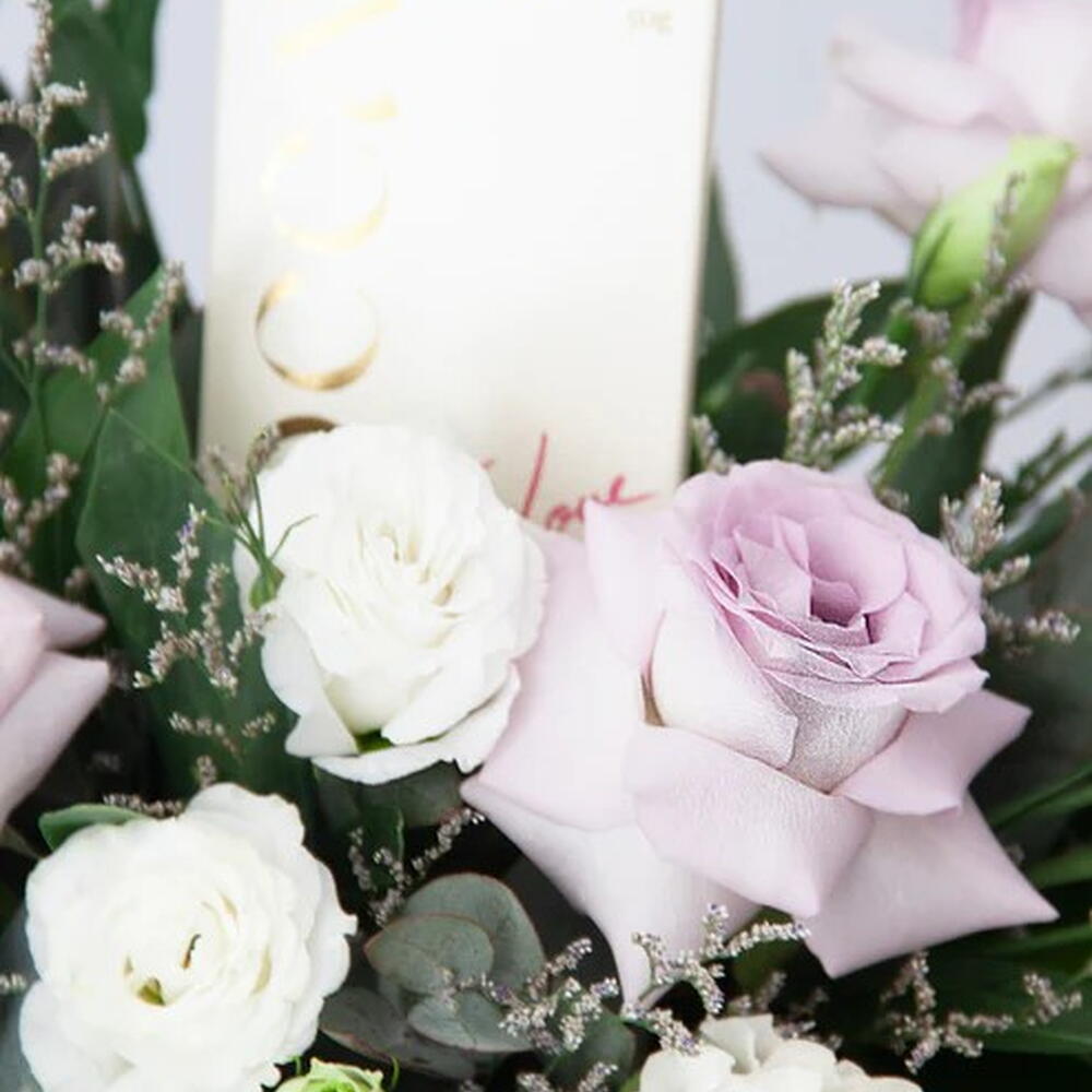 Eustoma - 4 pcs Eucalyptus - 4 pcs Limonium - 2 pcs rose - 4 pcs