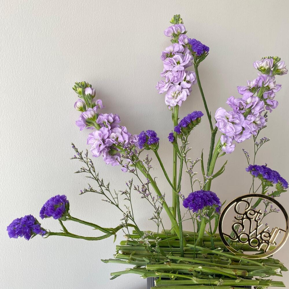 Statice - 4 pcs matthiola - 3 pcs ceramic vase - 1 pcs