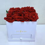 Indulge in the stunning beauty of our Flowers in a Box, carefully curated with 15 lush red rose stems. The roses are elegantly presented in a singular, stylish box that adds a luxurious touch. This eye-catching arrangement exudes sophistication and splendor, an ideal gift for your loved ones or an elegant centerpiece for any event.