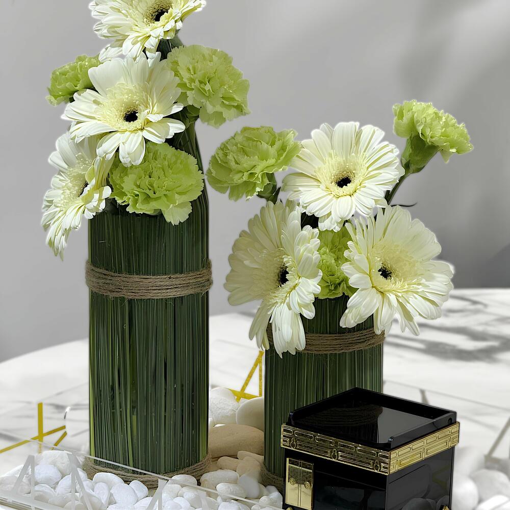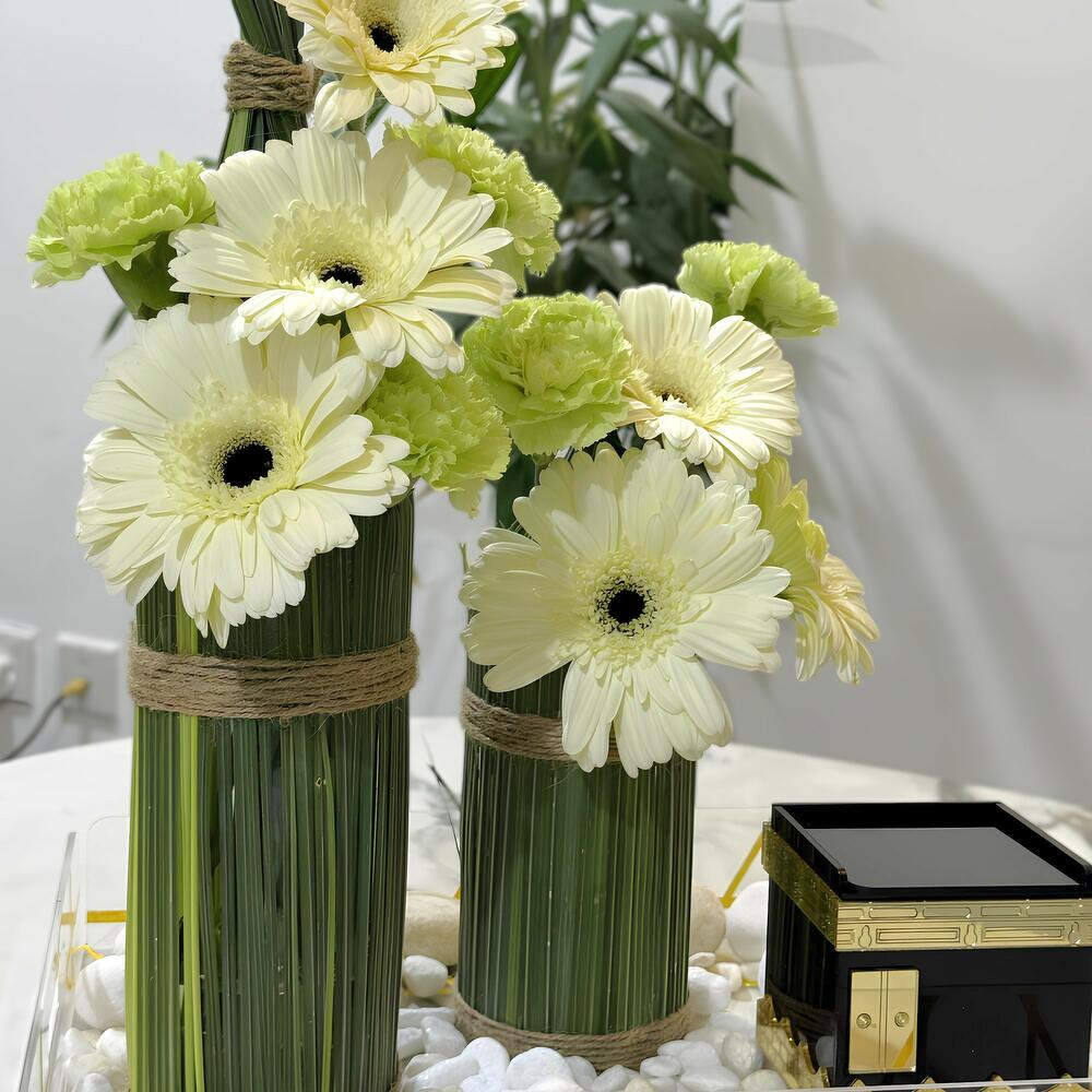 carnations - 6 pcs acrylic tray - 1 pcs jerbera - 6 pcs acrylic makka box - 1 pcs