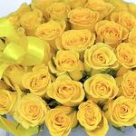 A cheerful burst of sunshine, this bouquet of vibrant yellow roses in a stylish white box is perfect for expressing joy, friendship, and appreciation. Whether for a birthday, congratulations, or simply to brighten someone’s day, these radiant blooms bring warmth and positivity to any space. The soft golden tones are balanced with lush green foliage, all tied together with a matching yellow satin ribbon for an elegant finish. Keep your flowers fresh by placing the box in a cool, shaded spot and lightly misting the blooms with water daily.