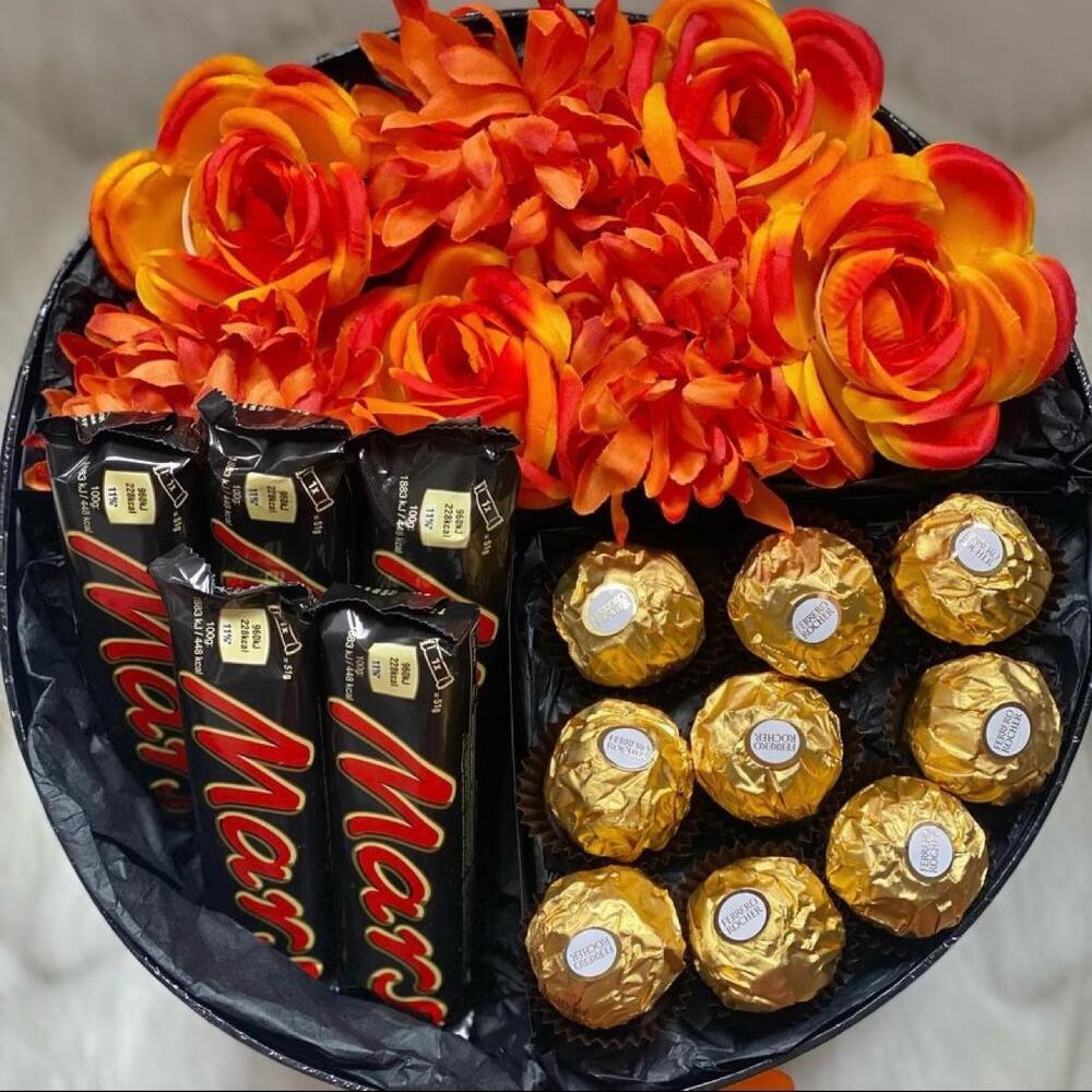 Flowers Ferreros Mars in a box