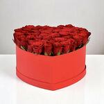 Celebrate love in the most iconic way with this heart-shaped box filled with velvety red roses. Each bloom is carefully arranged to express deep affection and romantic elegance, making it an unforgettable gift for anniversaries, proposals, or Valentines Day. The vibrant red box enhances the passionate charm of the roses, creating a striking visual statement. For best longevity, keep the arrangement in a cool, shaded place and mist the flowers lightly every couple of days. Make sure the floral foam inside stays damp to keep the roses hydrated and fresh.