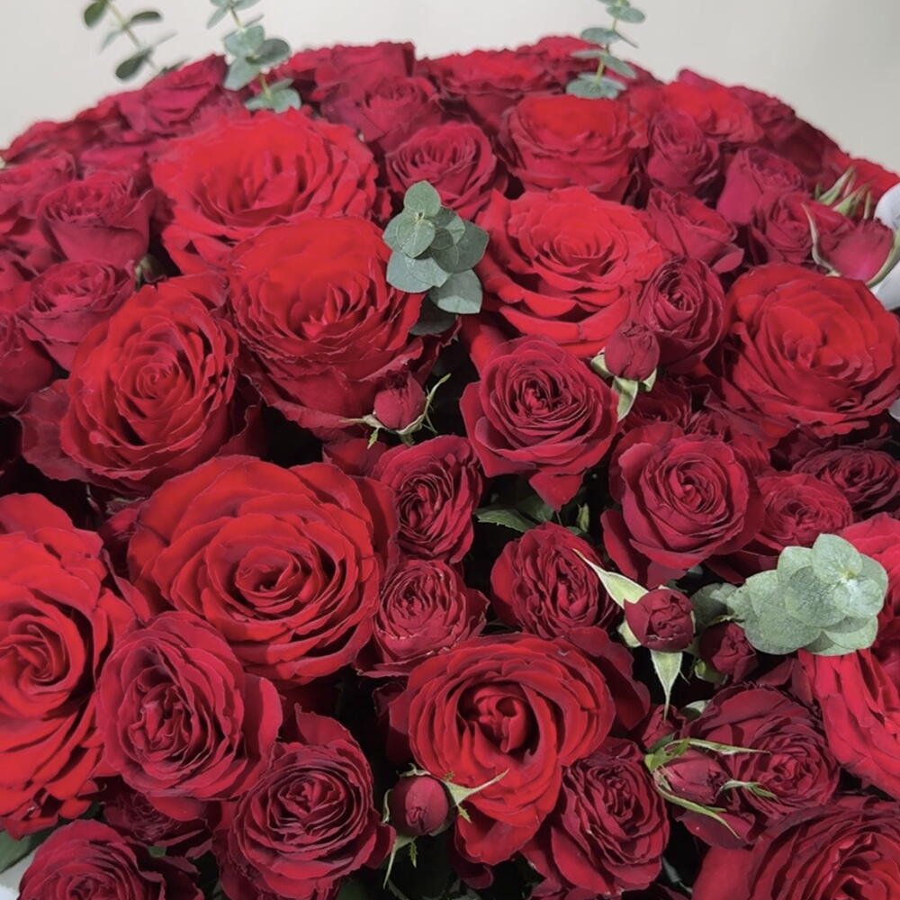 Eucalyptus - 10 pcs single red rose - 71 pcs spray red rose - 30 pcs