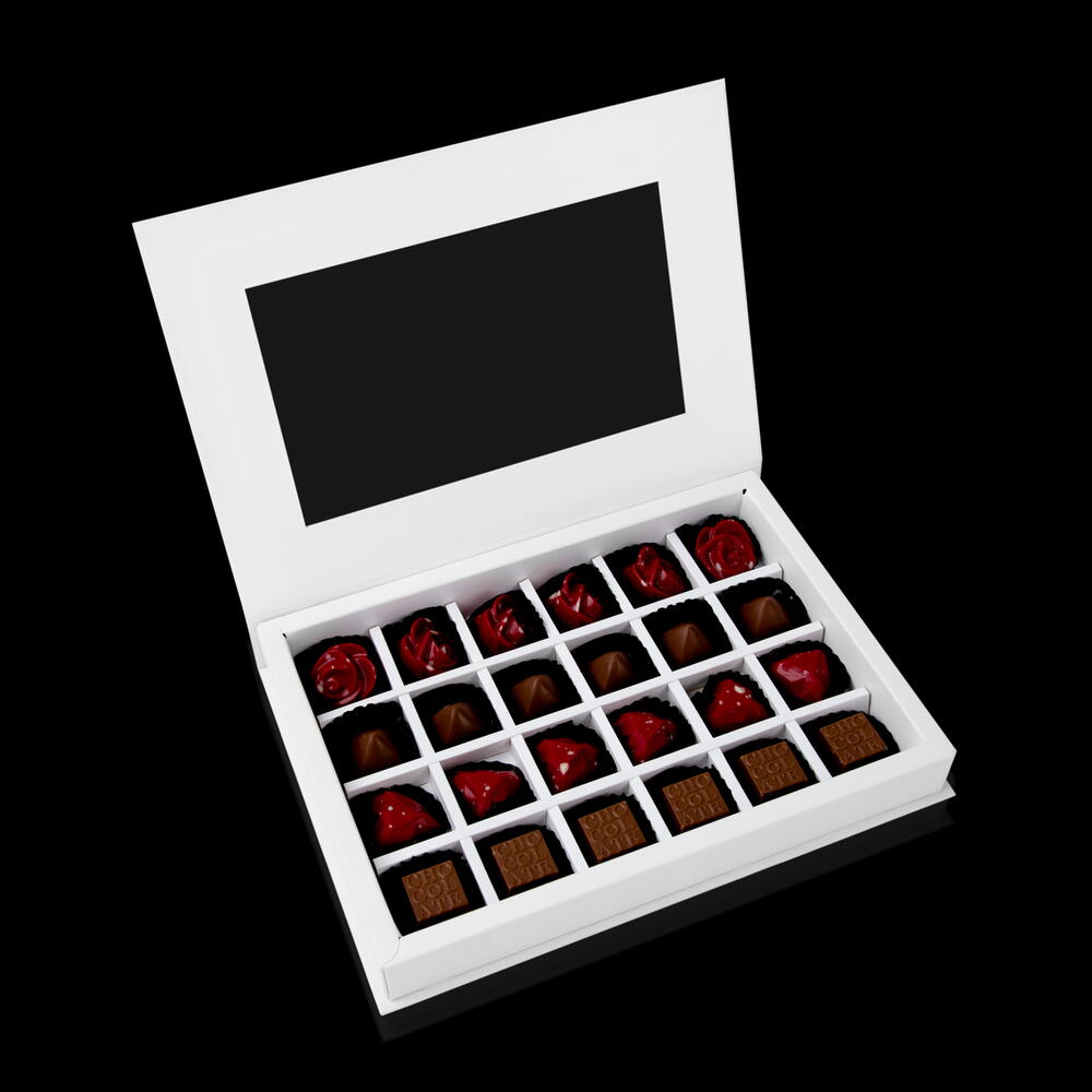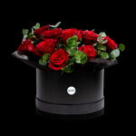Red rose - 15 pcs Eucalyptus - 10 pcs perfume - 1 pcs chocolate 18 box - 1 pcs