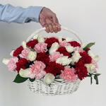 White rose - 20 pcs carnation pink - 20 pcs carnation red - 20 pcs white basket medium - 1 pcs