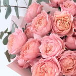 Featuring a generous cluster of 33 to 48 premium garden rose (Julietta) heads, Experience the perfect harmony of nature with our hand-crafted bouquet. Beautifully accented with fresh, fragrant Eucalyptus leaves for a modern and organic touch.