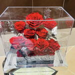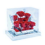 for ever rose - 1 pcs high quality glass dome - 1 pcs preserved red roses - 9 pcs preserved ruscus stems - 6 pcs