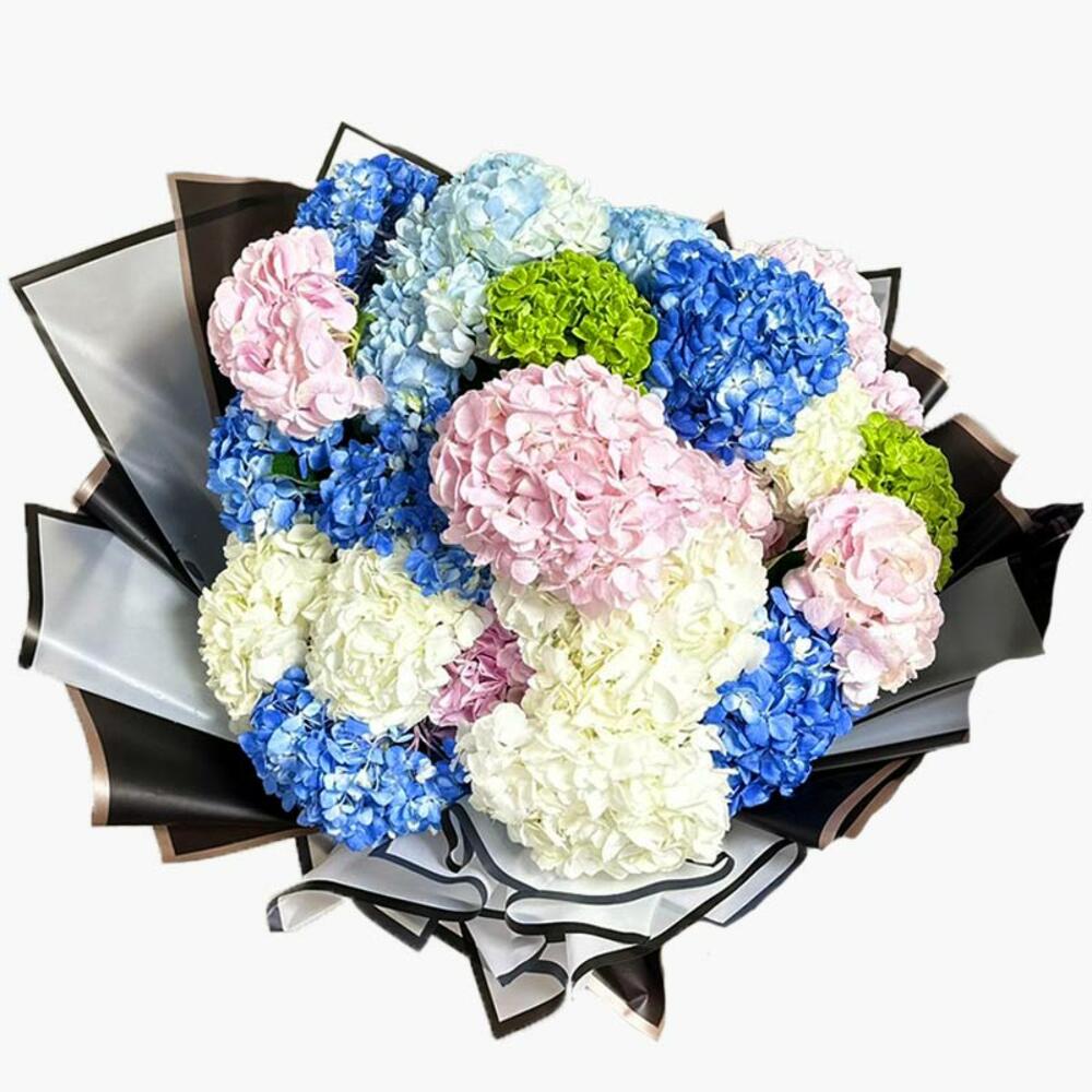 Product Details: Bouquet of 30 Mixed color Hydrangeas for your special one.