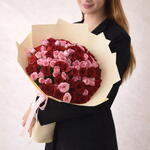 premium red roses - 30 pcs pink spray roses - 20 pcs fresh ruscus - 15 pcs