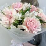white alstroemeria - 6 pcs wrapping paper - 5 pcs pink mondal rose - 5 pcs