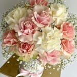 Gypsophila - 5 pcs box hat - 1 pcs white ecuador rose - 3 pcs pink ecuador rose - 8 pcs