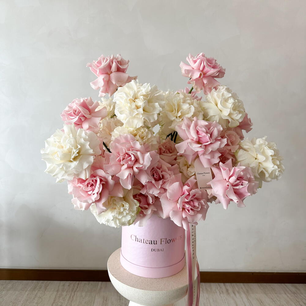 White - pink French rose mix - box M size